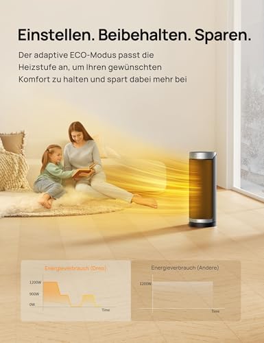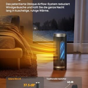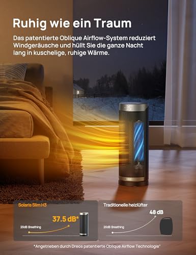 - Jedes Geräusch verstummen lassen: Eine Reihe von Technologien wurde eingeführt, um diesen Heizlüfter atemberaubend leise zu machen, insbesondere die ObliqueAirflow-Technologie von Dreo, die Luftturbulenzen reduziert, um eine sanftere, leisere Heizung mit nur 40 dB zu schaffen - leise wie in einer Bibliothek. Passend für Schlafzimmer.