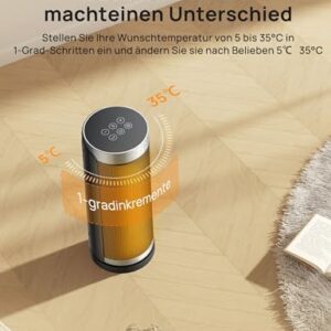 - Maximale Bequemlichkeit: Der versteckte Tragegriff sorgt für maximale Mobilität, wenn Sie die Heizung in Ihr Schlafzimmer, Ihre Garage, Ihr Wohnzimmer, Ihr Büro usw. bringen. Sie können einfach das Bedienfeld berühren oder die Fernbedienung verwenden, um einen 1-12h-Timer, einen 5-35℃-Digitalthermostat und mehr einzustellen, um Ihren täglichen Bedürfnissen gerecht zu werden.
