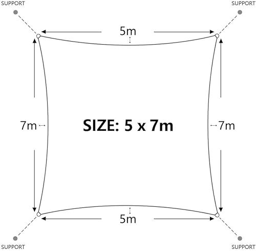 - Das Dripex Sonnensegel Set besteht aus: 1x Sonnensegel wind- und wasserabweisend (PES), Farbe: Grau, rechteckig 5x7m, 4x Befestigungsseile (je ca. 1,5m). Das Gewebe hilft UV-Strahlung zu blockieren und sorgt für einen schützenden Schatten im Außenbereich.
