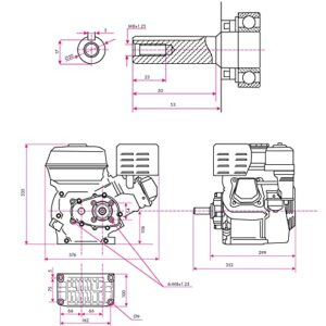 - Der Benzinmotor ist mit hochwertigem Vergaser und Ölmangelsicherung ausgestattet und kann in zahlreichen Maschinen als Antriebsmotor verbaut werden, z.B. Go-Kart, Rasentraktor, Rüttelplatte, Schneefräse, Holzspalter, Motorhacke, hierzu siehe die Motorzeichnung