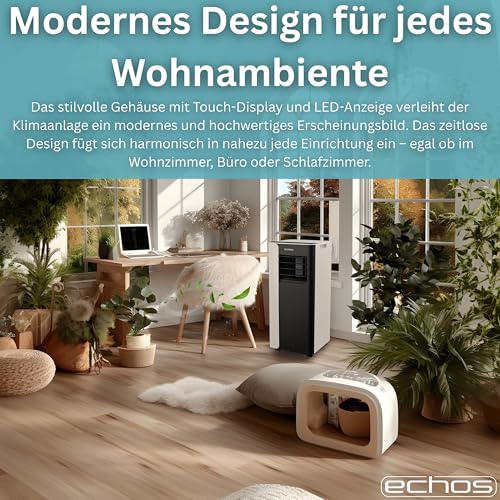 - ✔️Mobile Klimaanlage 9.000 BTU mit WIFI & Smart Home – leistungsstark, effizient und komfortabel für heiße Tage✔️ Genießen Sie auch an heißen Sommertagen ein angenehmes Raumklima mit unserer leistungsstarken mobilen Klimaanlage mit 9.000 BTU Kühlleistung. Das kompakte und moderne Gerät wurde entwickelt, um Wohnräume, Schlafzimmer, Büros oder kleinere Arbeitsbereiche schnell und effizient zu kühlen. Dank moderner Technologie, smarten Funktionen und energieeffizientem Betrieb bietet dieses Klimagerät die perfekte Kombination aus Komfort, Leistung und Umweltfreundlichkeit.