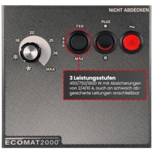 - Flexible Heizleistung: Drei Leistungsstufen (450W, 750W, 1500W) mit Thermostat für optimale Anpassung an individuelle Bedürfnisse.