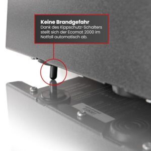 - Sicher und zuverlässig: Abschalt-Automatik, kein Brandrisiko dank Keramik-Heizelement und glühfreier Bauteile.