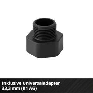 - Lieferumfang – Die Einhell Gartenpumpe GC-GP 6050 ECO PLUS wird inklusive Universaladapter 33,3 mm (R1 AG) geliefert.