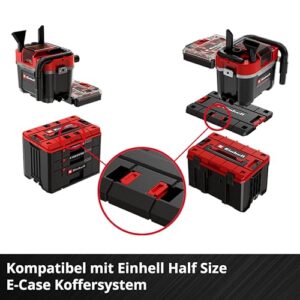 - Half Size E-Case System – Der Akku-Nass-Trockensauger ist Teil des modularen und damit praktisch miteinander kombinierbaren und stapelbaren Einhell Half Size E-Case Koffersystems.