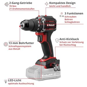 - Power X-Change – Der Einhell Professional Akku-Schlagbohrschrauber TP-CD 18/70-C Li-i BL - Solo ist Teil der Power X-Change Familie, in der alle Akkus und Geräte kombinierbar sind