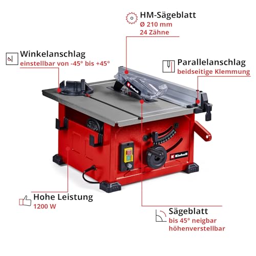 - Leistung – Die Einhell Tischkreissäge TC-TS 8 ist ein 1200 Watt starkes Gerät zum Bearbeiten von Holz, Faserplatten und ähnlichen Werkstoffen.