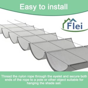 - 【Einfache Installation】 Das einziehbare Sonnensegel wird mit drei 8 mm dicken Nylonseilen aufgehängt. Führen Sie die Nylonseile durch die Ösen des Segels, um es an einem festen Gegenstand zu befestigen. Der Installationswinkel kann horizontal oder leicht um 30 Grad geneigt sein. Es sollte nicht zu stark geneigt werden. Die Installation ist einfach und bequem.