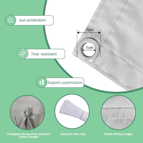 - 【Einfache Installation】 Das einziehbare Sonnensegel wird mit drei 8 mm dicken Nylonseilen aufgehängt. Führen Sie die Nylonseile durch die Ösen des Segels, um es an einem festen Gegenstand zu befestigen. Der Installationswinkel kann horizontal oder leicht um 30 Grad geneigt sein. Es sollte nicht zu stark geneigt werden. Die Installation ist einfach und bequem.