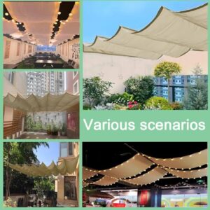 - 【Einfache Installation】 Das einziehbare Sonnensegel wird mit drei 8 mm dicken Nylonseilen aufgehängt. Führen Sie die Nylonseile durch die Ösen des Segels, um es an einem festen Gegenstand zu befestigen. Der Installationswinkel kann horizontal oder leicht um 30 Grad geneigt sein. Es sollte nicht zu stark geneigt werden. Die Installation ist einfach und bequem.