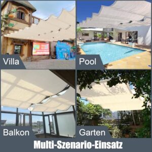 - Anwendbare Szenarien:Dieses Sonnensegel blockiert die sengende Sonne ,Geeignet für Terrassen, Rasenflächen, Gärten, Schwimmbäder, Teiche, Decks, Innenhöfe, Garagen, Grüngürtel, Einfahrten oder andere Außenbereiche