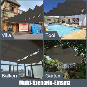 - Anwendbare Szenarien:Dieses Sonnensegel blockiert die sengende Sonne ,Geeignet für Terrassen, Rasenflächen, Gärten, Schwimmbäder, Teiche, Decks, Innenhöfe, Garagen, Grüngürtel, Einfahrten oder andere Außenbereiche