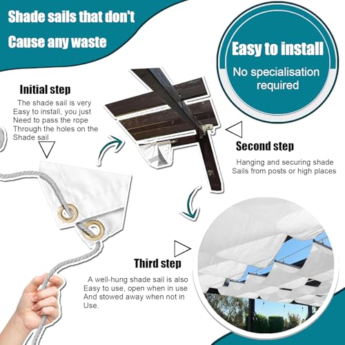 - 【EINFACHE INSTALLATION】: An jedem Abschnitt befindet sich eine O-Ring-Öse aus Aluminium, um maximale Stabilität und eine einfache Aufhängung zu gewährleisten. Führen Sie das mitgelieferte durch die Ösen des Segels und befestigen Sie es an einem Baum, einem Geländer, einer Wand oder einer anderen Stelle, an der es befestigt werden kann.
