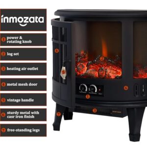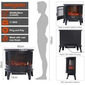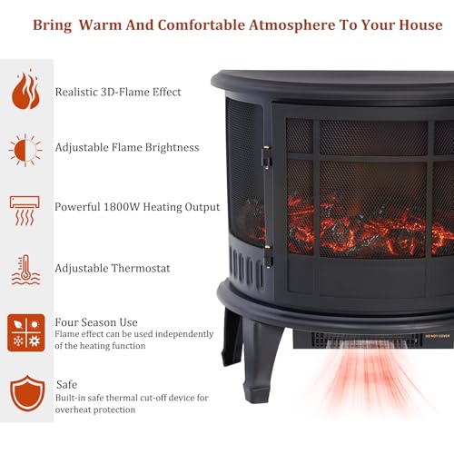 Elektrokamin mit Heizlüfter & Fernbedienung 2000W Elektro Kamin Elektrischer Heizung LED Kaminfeuer Effekt Kaminofen Flammeneffekt Heizer Ofen geräuscharm regelbar Schwarz