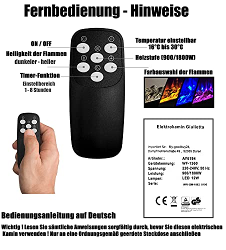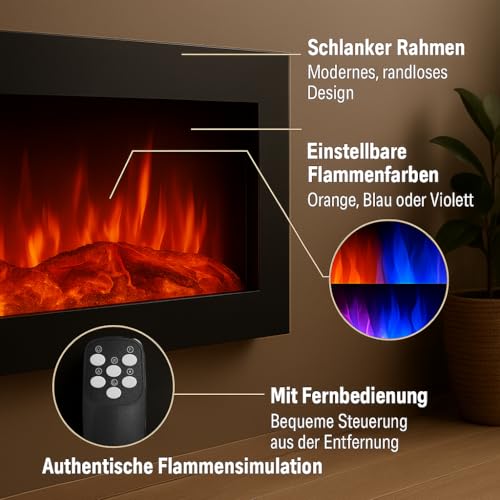 - 【 𝐄𝐱𝐪𝐮𝐢𝐬𝐢𝐭𝐞 𝐅𝐞𝐮𝐞𝐫𝐳𝐞𝐢𝐭 𝐦𝐢𝐭 𝐅𝐞𝐫𝐧𝐛𝐞𝐝𝐢𝐞𝐧𝐮𝐧𝐠 𝐮𝐧𝐝 𝐊𝐨𝐦𝐟𝐨𝐫𝐭 𝐨𝐩𝐭𝐢𝐤 】 Entdecken Sie die mühelose Kontrolle Ihres Kamins vom Sofa aus mit der inkludierten Fernbedienung (2 x AAA Batterien nicht enthalten). Die zeitlose Feueroptik mit echtem Holzfeuereffekt sorgt für eine behagliche Atmosphäre. Unser Produkt wird komplett aufgebaut geliefert (Plug & Play), inklusive deutschsprachiger Schritt-für-Schritt Bedienungsanleitung, Schrauben und Trockenwand Dübel.