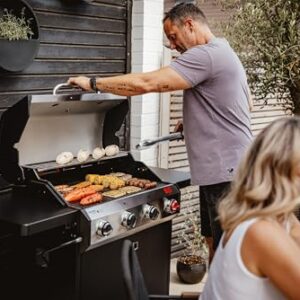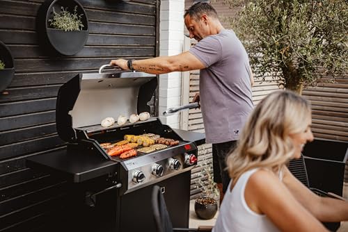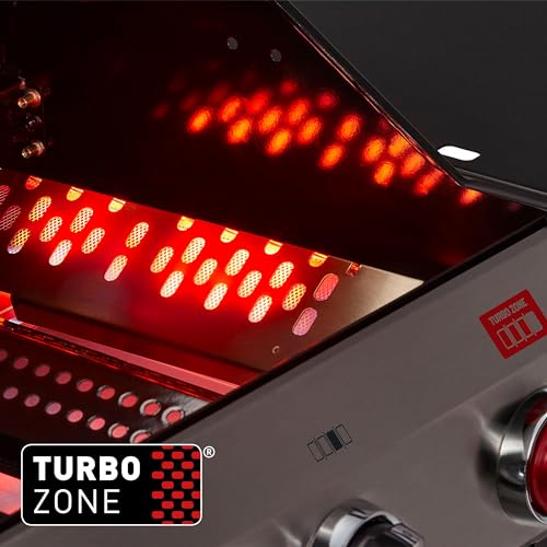 - 5 stufenlos regulierbare Edelstahlbrenner (3 x 3 kW + 1 x 4 KW 800 °C TURBO ZONE) für kraftvolles direktes und indirektes Grillen