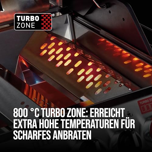 - Top-Features: 800 °C TURBO ZONE (4,2 kW) mit Infrarot-Mesh: erreicht turboschnell extra hohe Temperaturen für scharfes Anbraten. Die einfache Reinigung gelingt mit der SIMPLE CLEAN Funktion (werkzeuglos entnehmbare Einzelteile der Brennkammer)
