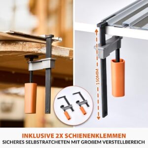 - SCHNELLSPANNKLEMMEN - Für zusätzliche Stabilität verwenden Sie die verbesserten Quick-Release Track Clamps, um die Raupe an Ihrem Material zu befestigen