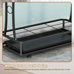 - ▶ Praktische Entwässerung: Der Schirmständer kann im Eingangsbereich aufbewahrt werden. Das Wasserreservoir verhindert, dass Regenwasser auf den Boden tropft und hält ihn sauber und leicht zu reinigen. Die verstellbaren Füße sorgen for Stabilität auch auf unebenen Flächen.