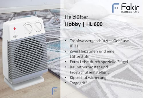 - IDEAL FÜR DAS BADEZIMMER: Der Fakir-Heizlüfter verfügt über ein tropfwassergeschütztes Gehäuse gemäß Schutzkategorie IP 21 und ist somit für den sorgenfreien Einsatz im Badezimmer geeignet