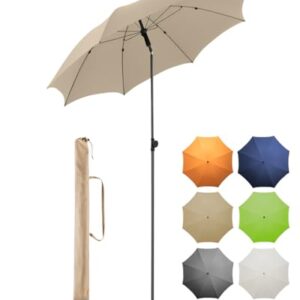 - Komfortabler Transport: Der Sonnenschirm wird mit einem praktischen Tragefutteral geliefert, das nicht nur den Transport erleichtert, sondern auch einen bequemen Tragegurt bietet, um den Schirm bequem überallhin mitnehmen zu können.