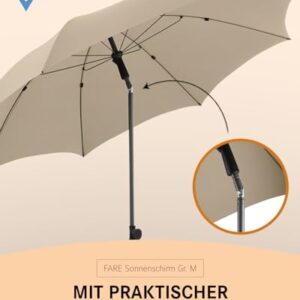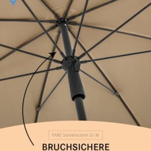 - Robuste Konstruktion: Mit einem Sicherheitsschieber, stabilen Fiberglasschienen und einem zweiteiligen, stufenlos höhenverstellbaren Stock mit Knickvorrichtung ist der Sonnenschirm einfach zu bedienen und gleichzeitig äußerst stabil.