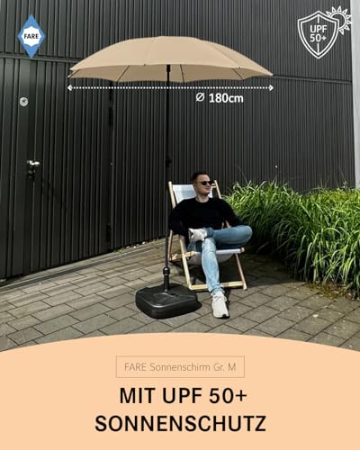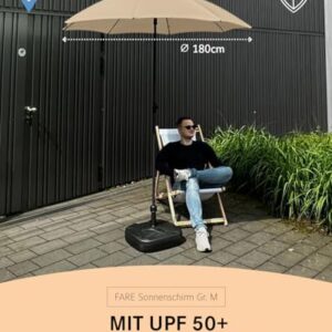 - Hoher Schutz vor UV-Strahlen: Der Sonnenschirm hat einen Durchmesser von 180 cm und verfügt über einen Bezug mit Lichtschutzfaktor UPF 50+, der Ihrer Haut einen sehr guten Schutz vor schädlicher Sonneneinstrahlung bietet.