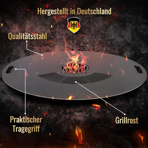 - Vielseitig einsetzbar – für Feuerstellen & Grillringe – Ideal als feuerschale mit grillplatte, Grillring oder Feuertonne mit Feuerplatte. Ermöglicht verschiedene Grillmethoden für jeden Geschmack.