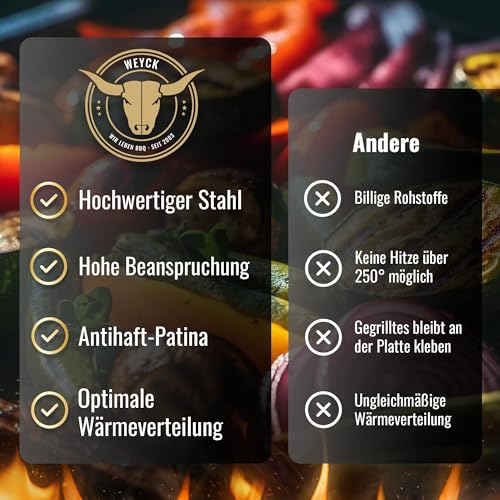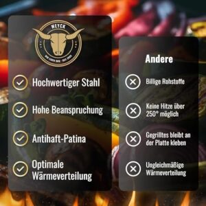 - Plancha & Teppanyaki-Grillen für intensives BBQ – Diese grillplatte rund ist perfekt für Plancha, Teppanyaki und klassisches BBQ. Die gleichmäßige Hitze sorgt für knusprige Krusten und zarte Speisen.