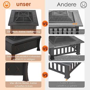 - GROßE GRÖßE: Diese Feuerstelle outdoor hat eine 12 cm breite Tischplatte, Sie können beim Grillen nicht nur viele Zutaten hineinlegen, sie können sich auch am Feuer wärmen und das Essen genießen und gleichzeitig Wärme bringen.