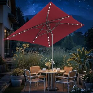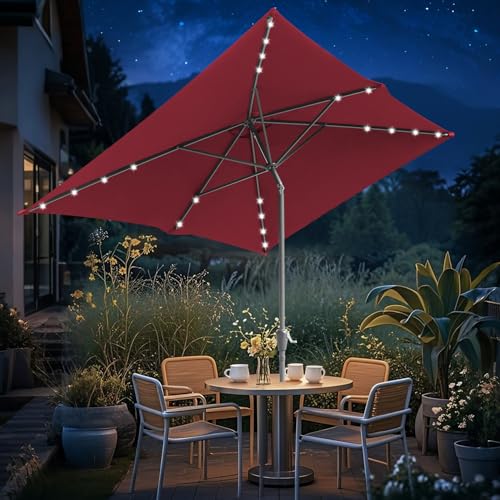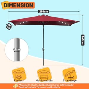 - 【SOLAR SONNENSCHIRM MIT LED】 Weiße LED-Leuchten, die von leistungsstarken Solarzellen betrieben werden. 16LED-Leuchten sorgen für ein angenehmes Ambiente. Genießen Sie schöne Sommerabende unter der LED-Beleuchtung. Durch den dezenten An-/Aus- Druckknopfschalter, lässt sich das Licht spielendeinfach steuern.