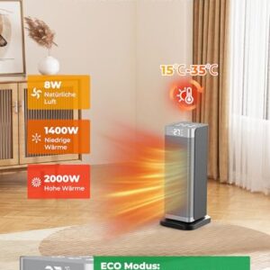 - ECO-Modus & Einstellbare Temperatur – Dieser heizlüfter energiesparend verfügt über einen ECO-Modus, mit dem Sie die Temperatur frei zwischen 15–35°C einstellen können. Er hält die ideale Raumtemperatur aufrecht, verhindert Energieverschwendung und sorgt gleichzeitig für eine angenehm warme Umgebung.