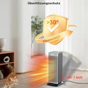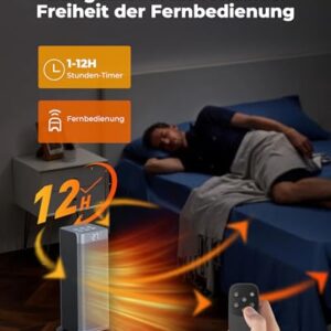 - Intelligente Steuerung & Digitalanzeige – Diese elektrische heizung wird als heizlüfter mit fernbedienung geliefert und verfügt über einen 1–12 Stunden heizlüfter mit Timer sowie eine klare Digitalanzeige. Sie können Modus und Temperatur bequem aus der Ferne einstellen, ohne aufstehen zu müssen, und so jederzeit Wärme genießen – ob im Bett oder am Schreibtisch. Als praktischer Heizlüfter konzipiert, bietet er sowohl Effizienz als auch Komfort für den täglichen Gebrauch.