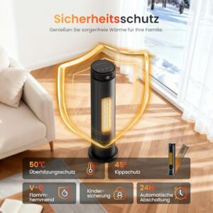 - Sicherheit zuerst: Dieser elektrische Heizlüfter ist für ultimative Sicherheit konzipiert und beinhaltet mehrere Schutzmaßnahmen wie automatischen Kippschutz, 24-Stunden-Auto-Off, Überhitzungsschutz und eine Kindersicherung, um Ihre Familie und Haustiere zu schützen. Nach dem Abschalten wird eine 30-sekündige Countdown-Anzeige beim Heizlüfter eingeleitet, und der Lüfter arbeitet, um die Restwärme abzuleiten