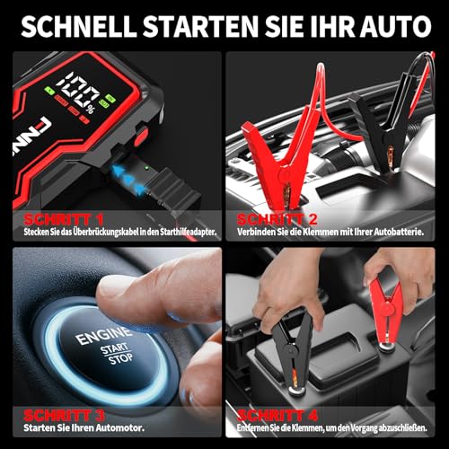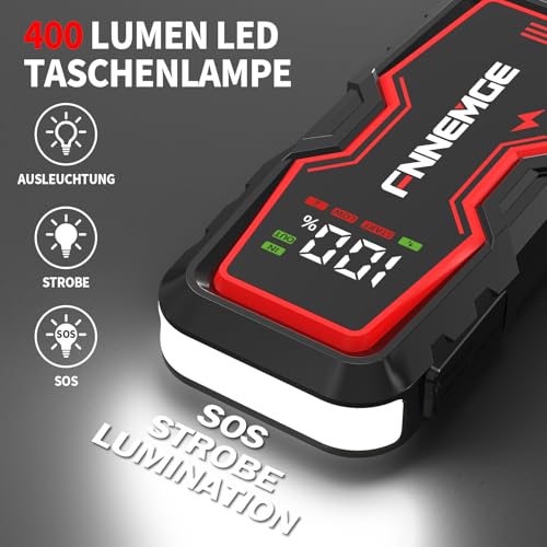 - 🚗 【WAS SIE BEKOMMEN & GARANTIE】Das FNNEMGE Starthilfepaket enthält: 1 tragbare Starthilfe, 1 Set intelligente Starthilfekabel, 1 USB-C-Ladekabel, 1 Staubbeutel und 1 Benutzerhandbuch. Wir bieten eine 2-JAHRE GARANTIE, lebenslangen technischen Support. Bei Fragen während der Nutzung können Sie uns über die im Benutzerhandbuch angegebene E-Mail-Adresse kontaktieren.