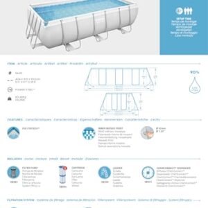 - POOL OUTDOOR POOL BESTWAY 404 x 201 x 100 cm Fassungsvermögen: 6.478 l. ChemConnect Diffuser. Reparatursatz FrameLink Elementsverriegelungssystem mit korrosionsbeständigen T-Anschlüssen Lieferung mit Leiter, Pumpe und Filterpatrone Typ II. Einfache und schnelle Montage. Gewicht: 60,44 kg.