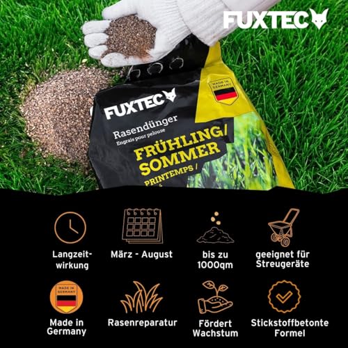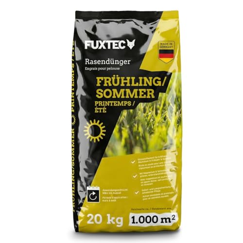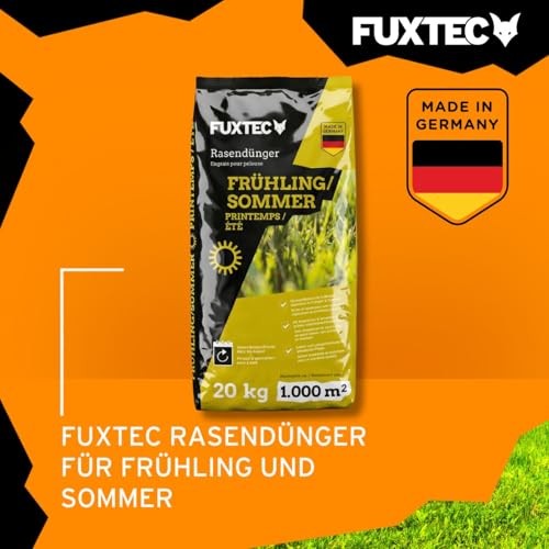 - FUXTEC – DEINE STARKE WAHL: 20 kg Inhalt für bis zu 1000 m² Rasenfläche, optimal abgestimmt auf die Pflege von Rasenflächen im Frühjahr und Sommer.