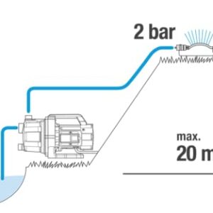 - Kompatibel: Durch den Druck von bis zu 4.1 bar lässt sich die Pumpe auch mit längeren Schläuchen oder Regnern wie dem Gardena AquaZoom (nicht enthalten) verwenden