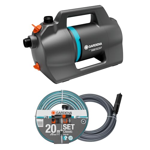 - Lieferumfang: 1x Gartenpumpe 5000 Silent, 1x 20m 13mm (1/2")-Schlauch mit Armaturen, 1x 3.5m Sauggarnitur 25mm (1")