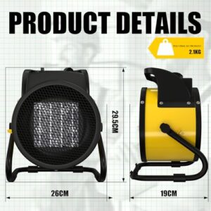 GARDTECH 3000W Heizlüfter Energiesparend, Keramik Heizstrahler, Heizung Elektrisch extra Stark, Großes Luftvolumen, Kippschutz, Thermostat, 30 m² Bauheizer mit Überhitzungsschutz Gelb