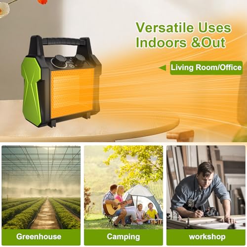- Kompaktes Design & einfache Handhabung:Mit nur 1,4 kg Gewicht, praktischem Tragegriff und platzsparendem Format ist der Heizung elektrisch leicht zu transportieren. Leiser Betrieb und stabile Standfüße machen ihn ideal für Büro, Zuhause, Werkstatt oder Garage