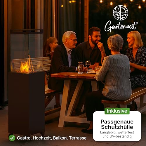 - Gas-Terrassenheizer mit Glaszylinder – stilvolle Wärme im Außenbereich: Erlebe echtes Flammenambiente mit dem Gartenzeit Gas-Terrassenheizer aus pulverbeschichtetem Stahl. Der 360°-Glaszylinder sorgt für eine faszinierende Sicht auf die Flamme – wie ein moderner Outdoor Kamin oder Terrassenofen. Ideal als Heizpilz oder Heizstrahler Gas für Terrasse, Balkon oder Garten.
