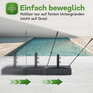 - Einfache Mobilität – Dank integrierter Rollen kannst du den Schirmständer mühelos bewegen, ohne zu schleppen. Perfekt für wechselnde Sonnenpositionen!