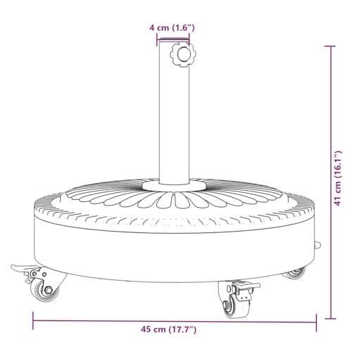 - Flexibilität durch Rollen: Dank der vier integrierten Rollen (zwei davon feststellbar) ist der Transport des Schirmstehers einfach und mühelos, egal ob auf der Terrasse, im Garten oder auf dem Balkon.