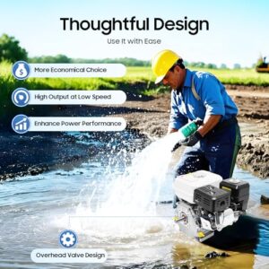 - 【Durchdachtes Design】Er verfügt über eine obenliegende Ventilkonstruktion. Diese Konstruktion ermöglicht es dem Motor, bei niedrigen Drehzahlen ein höheres Drehmoment zu liefern, was die Leistungsfähigkeit des Motors verbessert. Diese Eigenschaft macht OHV-Motoren in Situationen, die häufiges Starten und Fahren mit niedriger Drehzahl erfordern, wirtschaftlicher