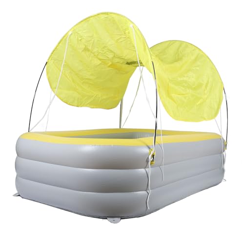 - Mit Überdachung: Der aufblasbare Pool ist mit einer Überdachung ausgestattet, die wirksam Sonneneinstrahlung verhindert, die empfindliche Haut Ihres Kindes schützt und Ihrem Kind beim Schwimmen mehr Komfort und Sicherheit bietet.