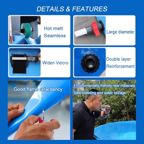 - Auslaufsicheres und robustes Design: Dank hochtemperaturversiegelter Kanten und nahtloser Verbindungen ist unser Produkt absolut dicht. Hergestellt aus dickem PVC, garantiert es Durchstoßfestigkeit und Langlebigkeit auch bei widrigen Witterungsbedingungen. Ideal für Fischzucht, Wasserspeicherung und Outdoor-Aktivitäten mit Haustieren und Kindern. Vertrauen Sie auf unsere zuverlässige Lösung für all Ihre Outdoor-Abenteuer.
