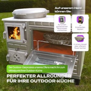 - ✅ VIELFALT DER GERICHTE - In unserem gartenofen gusseisen können Sie Spiegeleier auf der Herdplatte braten, Gerichte in konischen Töpfen zubereiten, Plov oder Eintopf kochen, einen Wasserkocher erhitzen oder Glühwein aufwärmen. Unser küchenofen ist groß genug, um Pizza, Aufläufe und Braten nach traditionellen Rezepten zuzubereiten.