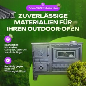 - ✅ VIELFALT DER GERICHTE - In unserem gartenofen gusseisen können Sie Spiegeleier auf der Herdplatte braten, Gerichte in konischen Töpfen zubereiten, Plov oder Eintopf kochen, einen Wasserkocher erhitzen oder Glühwein aufwärmen. Unser küchenofen ist groß genug, um Pizza, Aufläufe und Braten nach traditionellen Rezepten zuzubereiten.