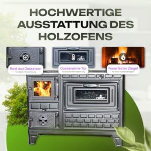 - ✅ EIGENSCHAFTEN DES MODELLS - Alle Modelle unserer holzofen haben eine Tür mit einer speziellen gusseisernen Tür. Der Feuerraum hat einen Rost aus Gusseisen und feuerfeste Ziegel. Als Brennstoff dienen Holz oder Holzkohle. Die Kochplatte ist mit 3 beweglichen Kochfeldern für das Kochen auf offenem Feuer ausgestattet.